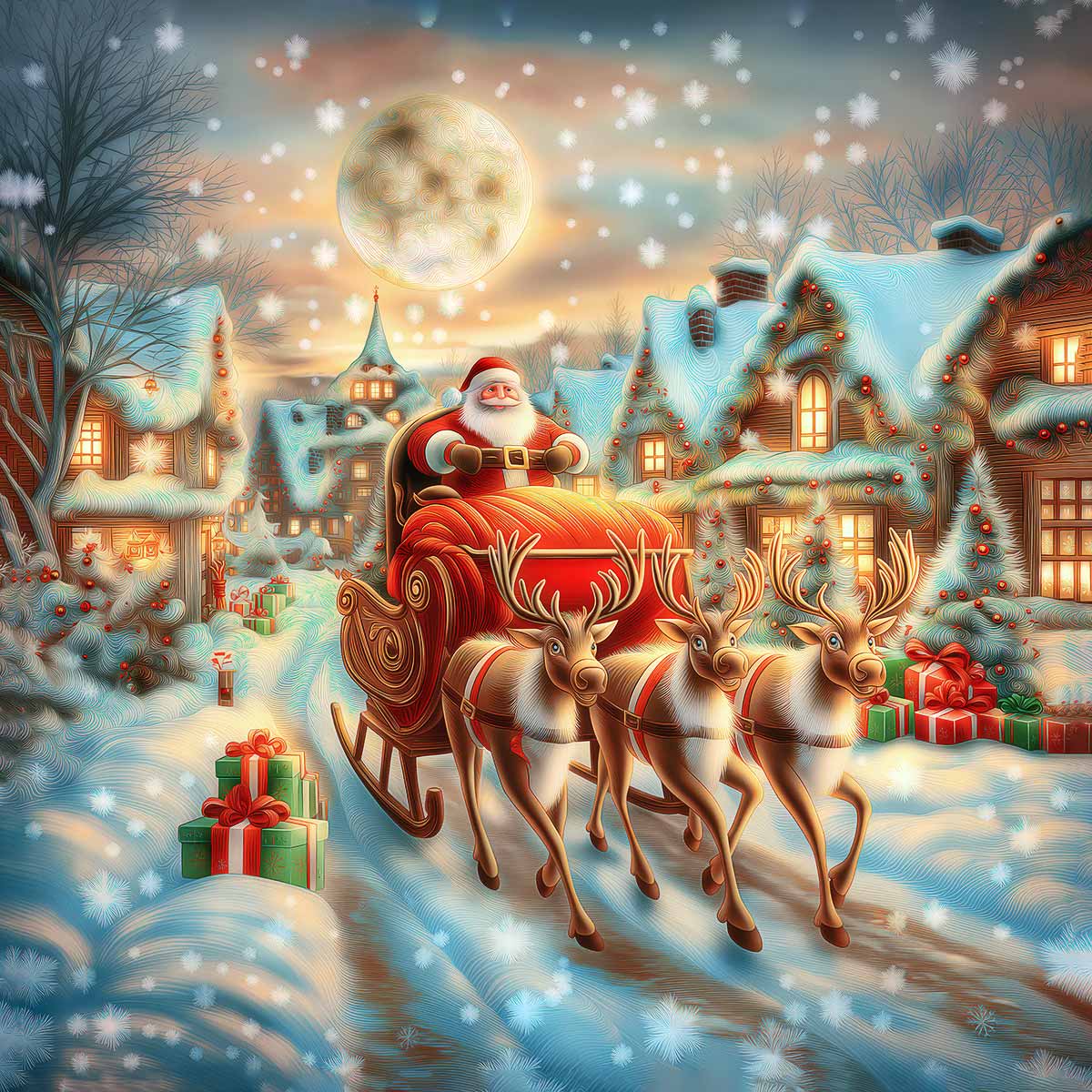 Puzzle lemn - Crăciun - Sania lui Moș Crăciun, 50 piese, High difficulty